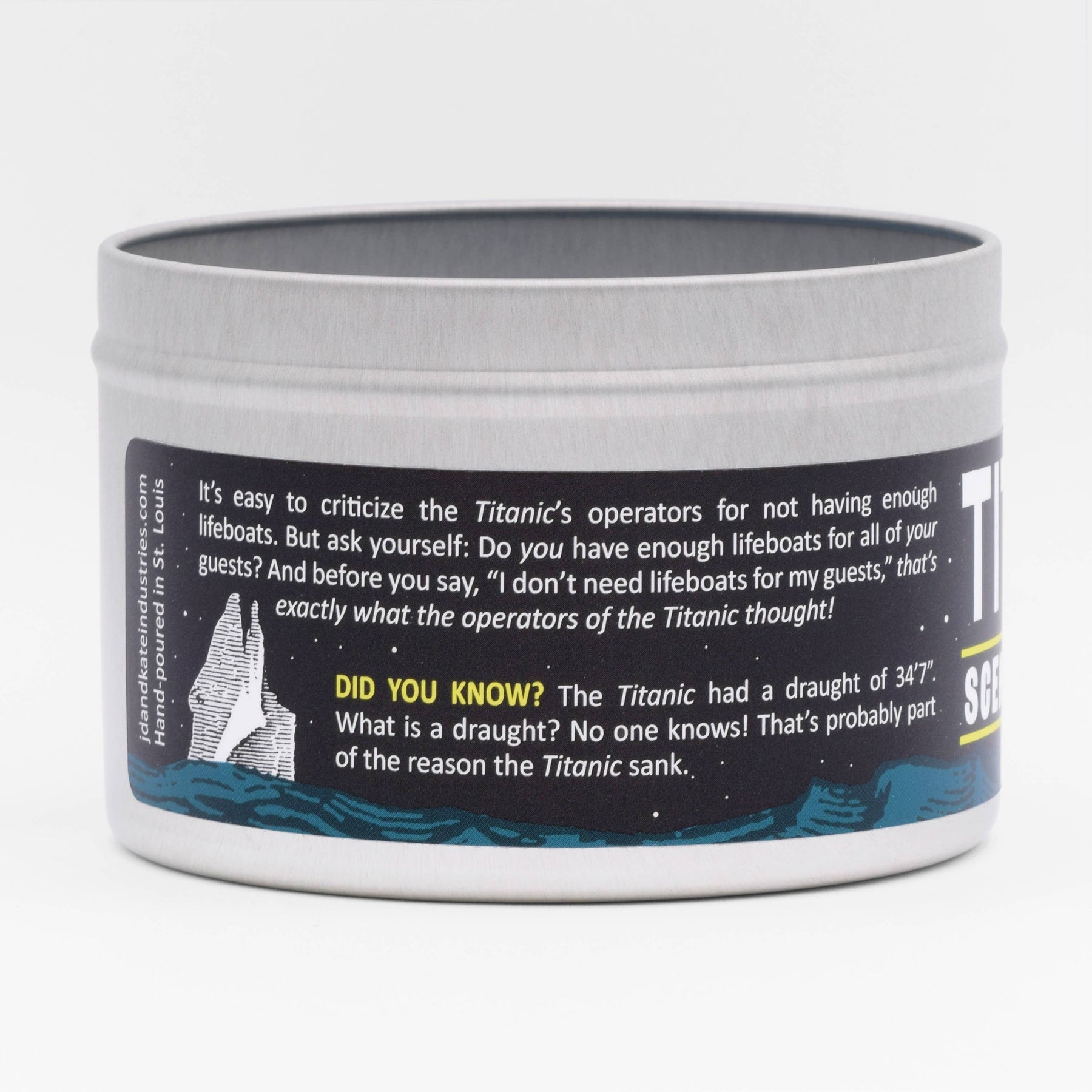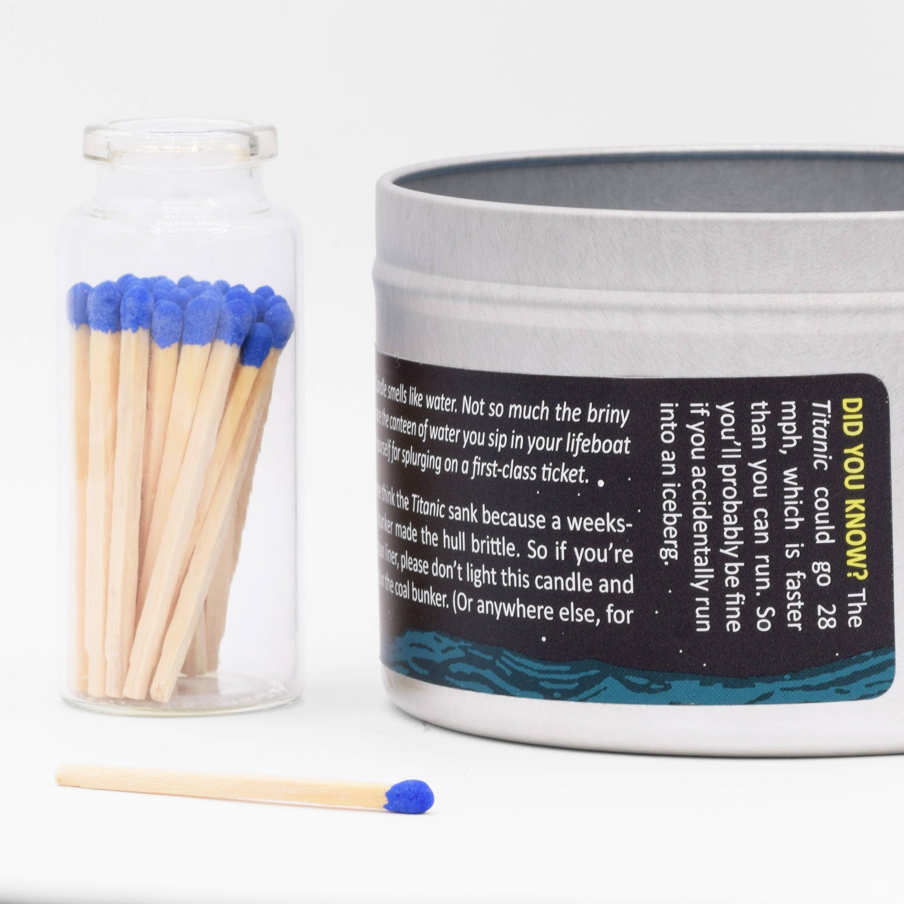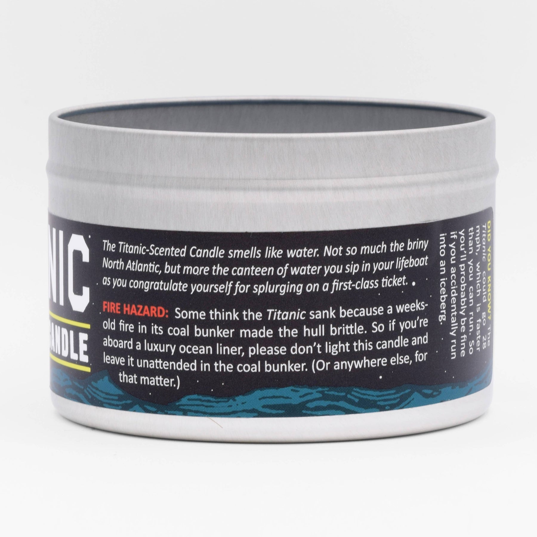 No, you’re not seeing an ocean mirage: The Titanic Scented Candle features a tiny wax ship slipping beneath the tiny wax waves after tragically striking a tiny wax iceberg. This looks pretty amazing! But please avoid the temptation to treat it as a timeless work of art. This candle is meant to be burned, and that ship and iceberg are meant to be melted! Then you can buy a new candle, so that the beautiful cycle of candle consumption continues. / fragrance: ocean