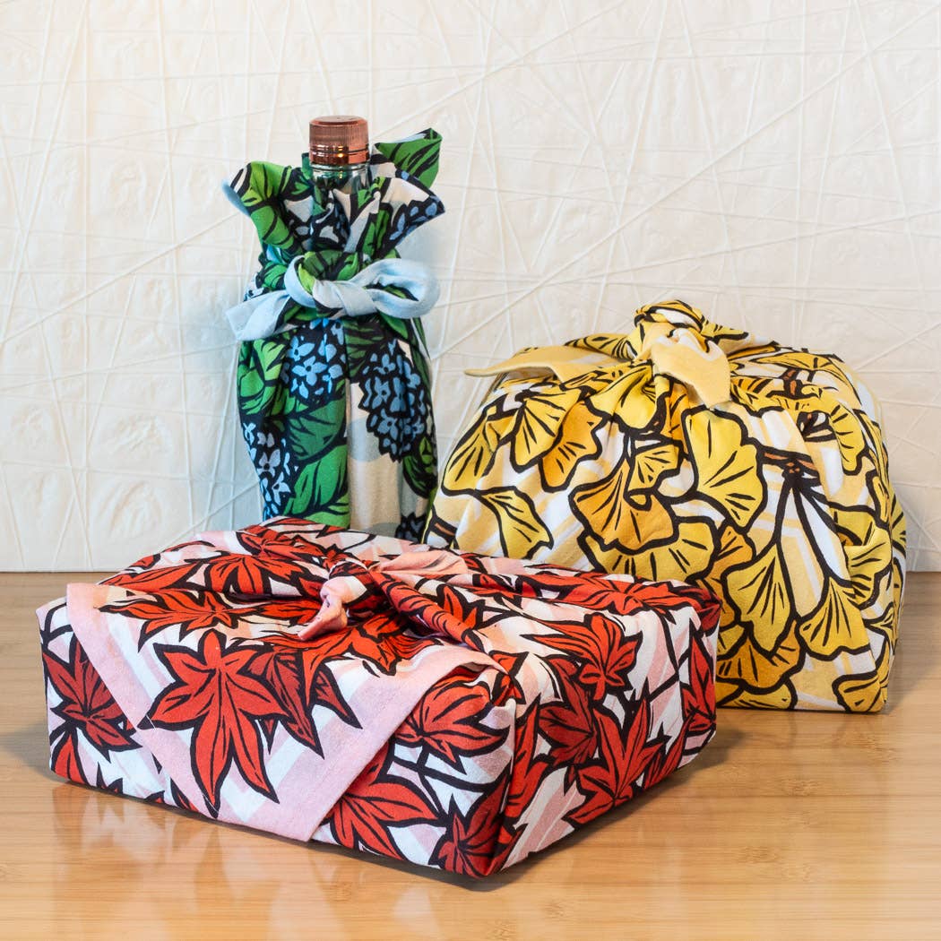 This design began as a series of handcarved linocut blockprints featuring Japanese maple leaves; these prints were digitally collaged to produce a colorful all-over pattern. This towel is a generous 27x27" square to maximize its usefulness: - Use it in the kitchen to dry hands or dishes, or to cover you bread dough as it rises - Use it as a furoshiki: wrap a bottle of wine or a small box to give as a housewarming or holiday present, or use it to carry a picnic lunch to your local park - Wrap it around your neck as a bandana - Hang it on your wall to lend your room a pop of color PRODUCT DETAILS: - 27×27" square - 100% cotton – soft and highly absorbent - Corner hanging loop Designed in Seattle, WA by artist Lauren Nishizaki. Made in India in a GOTS certified facility that ensures environmentally sustainable and socially responsible production. Towels are made to OEKO-TEX standards. Care instructions: machine wash cold; line dry or tumble dry low to prevent fading.