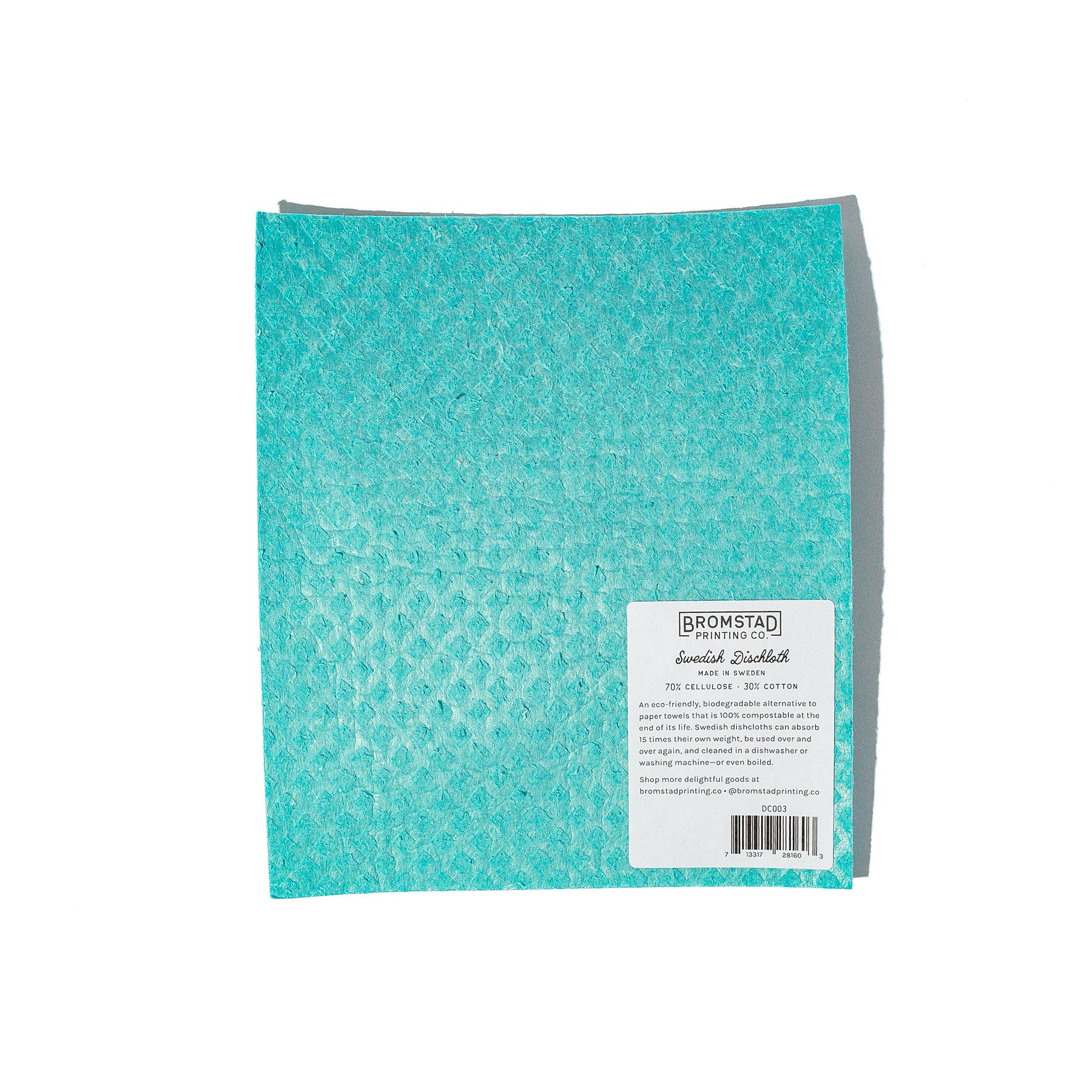 We are pleased to now offer authentic Swedish dishcloths. An eco-friendly, biodegradable alternative to rags or paper towels, these sponge cloths can be used over and over to wash dishes and wipe up messes. Use them in place of disposable paper towels or rags. They are 100% compostable at the end of their life. Our Swedish dishcloths are screen-printed with an array of our bestselling illustrations. This one features a handsome orange cat pressed inside a clear glass bowl, fruit displaced around him, screen printed in two colors on a teal sponge cloth. 172mm x 200mm 70% cellulose • 30% cotton
