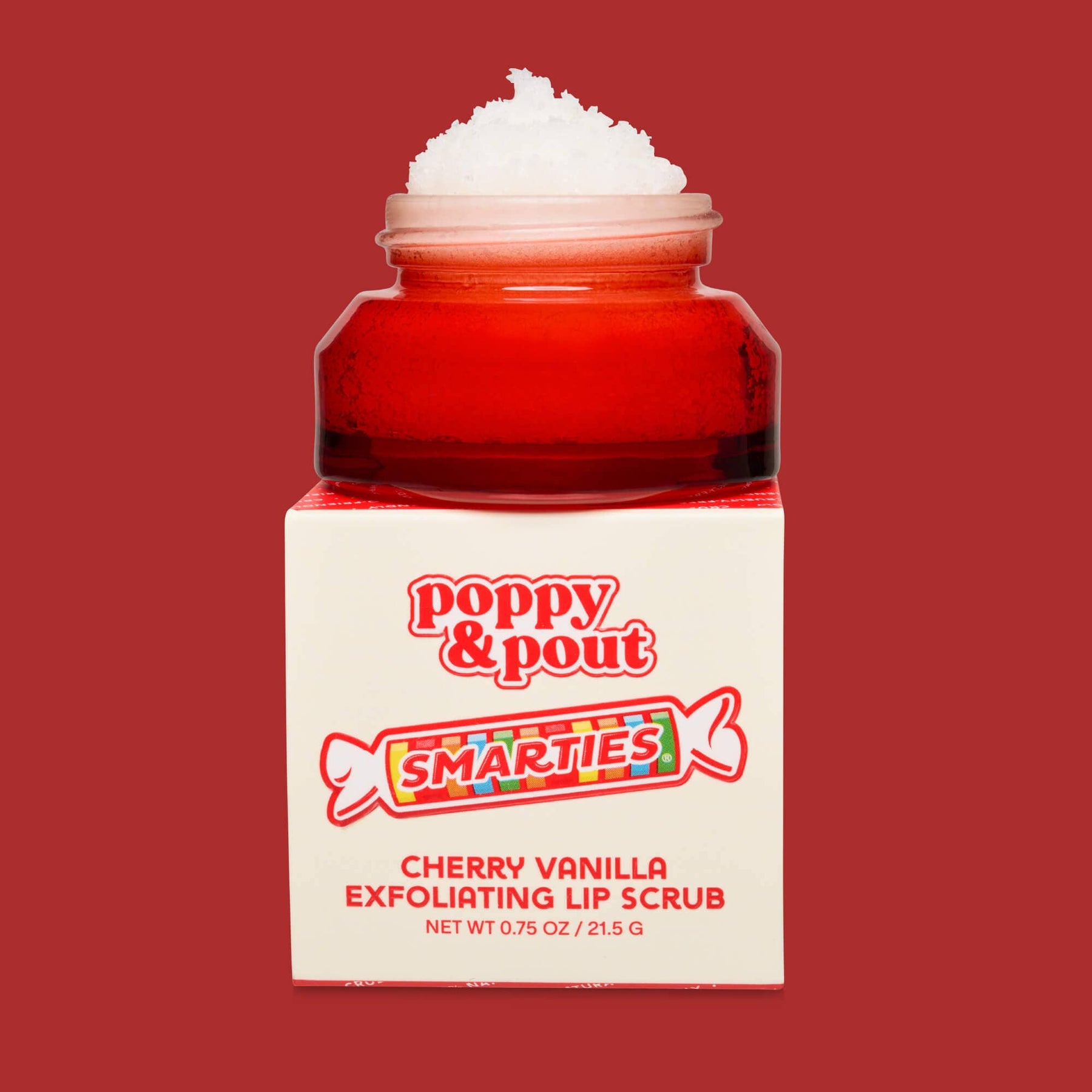 Smooth things over with a little candy nostalgia 🍒 Our Smarties™ Cherry Vanilla Lip Scrub gently exfoliates dry lips while leaving behind a sweet cherry-vanilla scent. Made with 100% natural, flower-powered ingredients, this limited-edition scrub buffs away flakes and preps lips for extra-smooth balm application. Prep your pout for smooth, hydrated lip balm application with our exfoliating lip scrubs. We use a clean combination of natural ingredients like sugar and essential oils to help clean and gently exfoliate your lips. Our Exfoliating Lip Scrub will exfoliate dead skin and leave your lips feeling soft and smooth! Net Weight 0.75 oz / 21.5 g